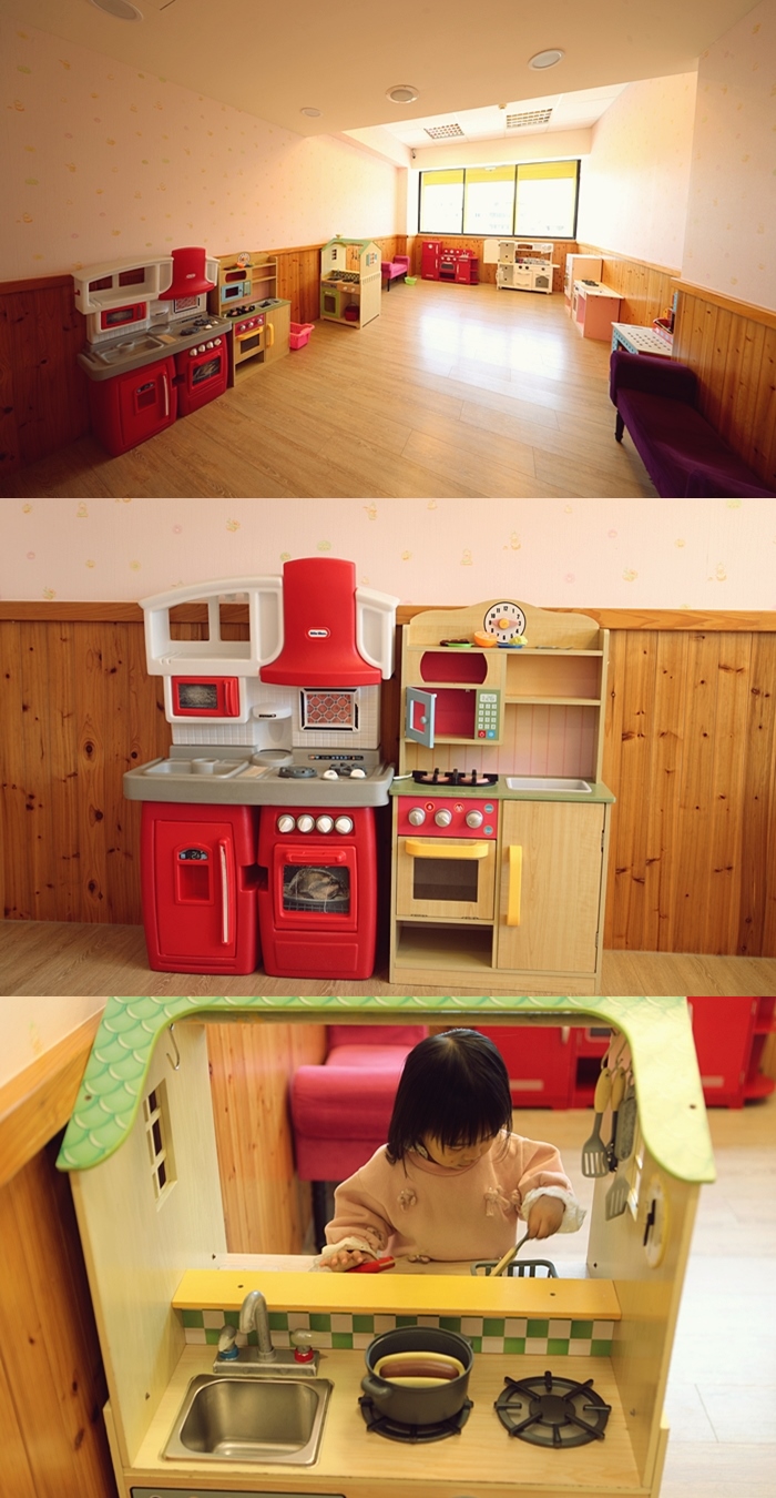 | 另一個空間就是小女生最愛的兒童廚房室,這邊真的也可以讓嬰皇消耗掉很多時間,自從當爸媽以後,深深覺得可以自由自在耍費滑手機是最幸福的時光,三樓的歡樂森林真的對爸媽來說太珍貴了,小屁孩一進入後就自動開啟超耗電模式。 |