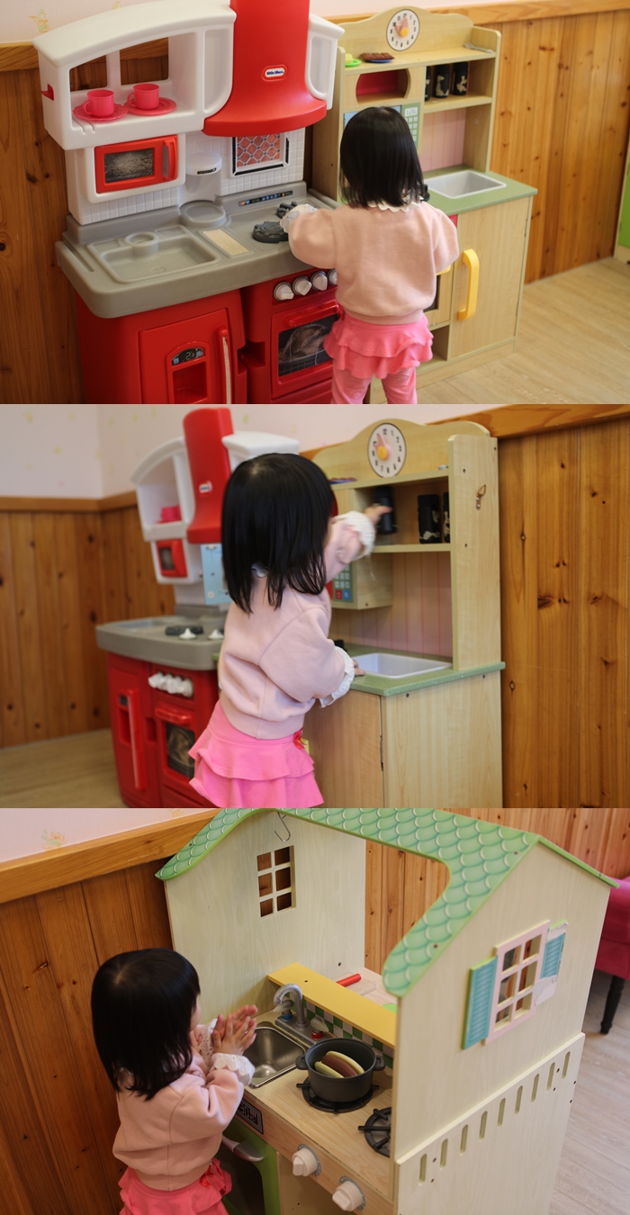 | 這邊的廚房玩具都很齊全,妹妹玩到一整個不亦樂乎,加上空間打掃得都很乾淨,現場的工作人員不停的來整理加上把玩具歸放到原位,小小廚房看起來也都保養得很好,似乎有定期在更換。 |