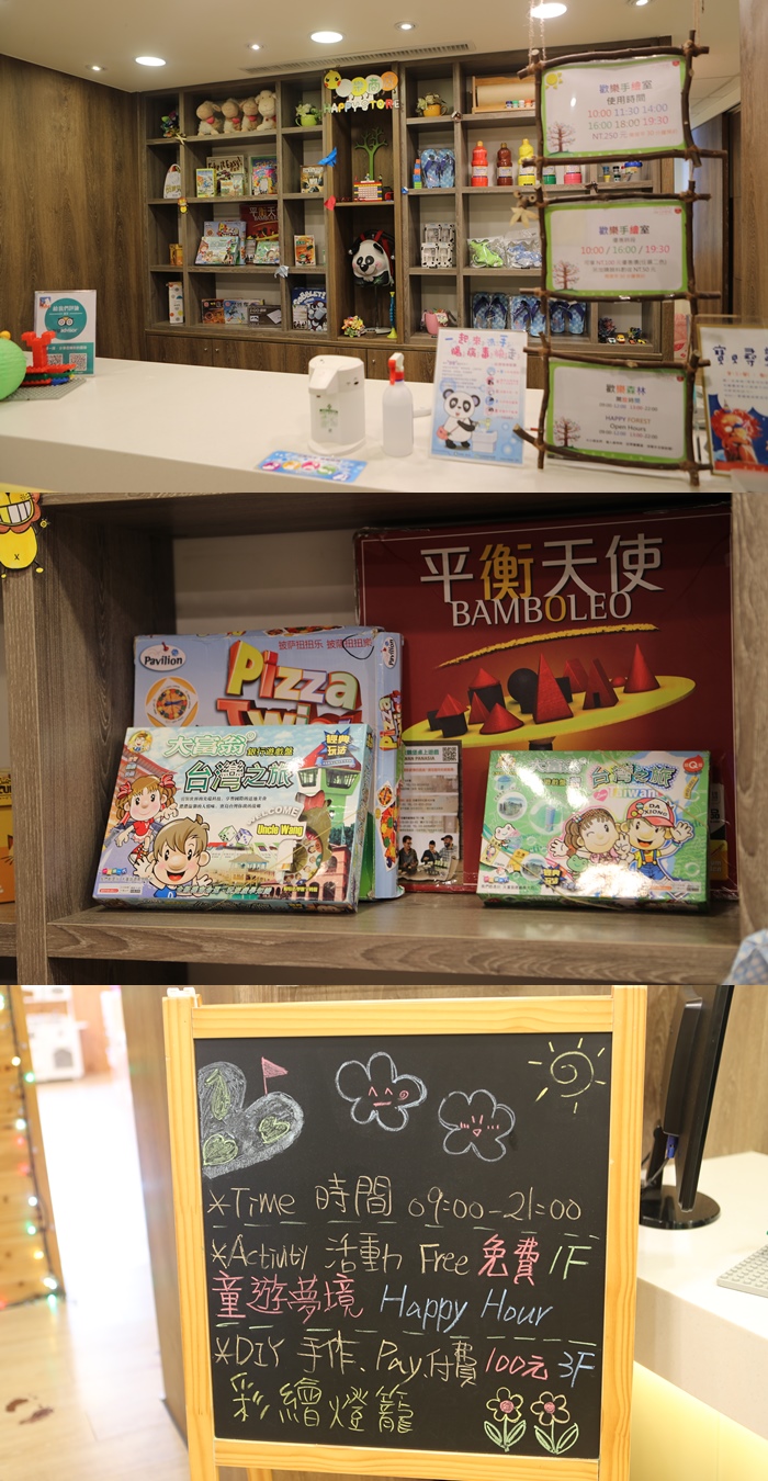 | 大人也不用擔心太無聊,櫃台也有很多桌遊可以借閱,佈告欄黑板上會有當天的活動訊息,幾乎不用出門就可以跟小朋友玩上一整天。 |