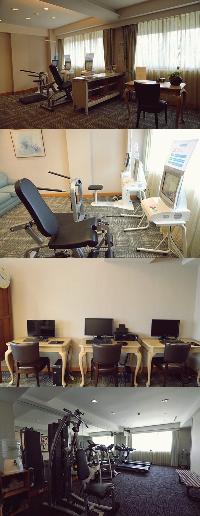 | 商務空間也很不錯,帶點歐式典雅的風格,除了有電腦設備以外,還有滿特別的診療器材,這個在飯店還滿少見的,另外健身房也全部都在三樓,這些公共設施都需要房卡才方可進入,確保每個房客的權益。 |