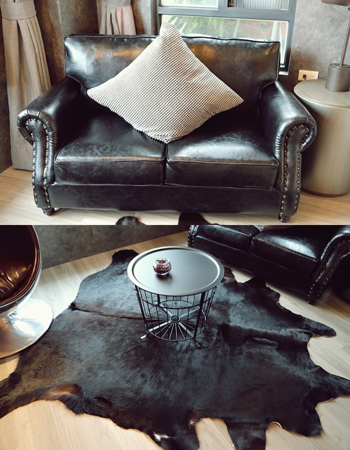 | 復古的皮製老沙發加上黑色的仿毛皮地毯,有種曠野傳奇的感覺,我好喜歡他們家的設計感,每個小地方都可以看的出來花了不少心思。 |