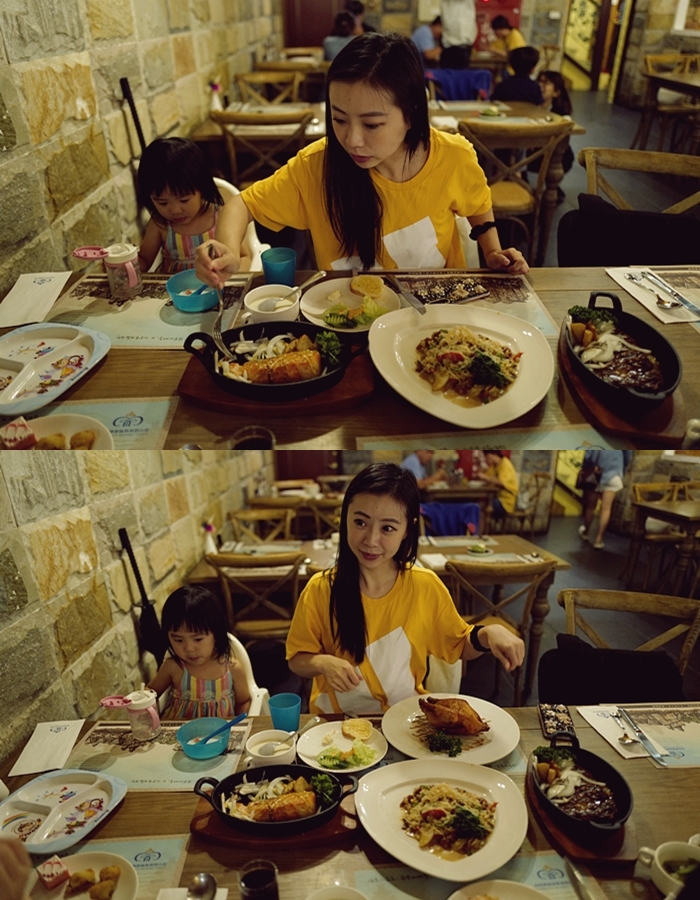 | 每個人都點不一樣的主餐一起分享,然後在去自助吧拿取時候,一家人這樣吃吃喝喝的超開心,完全不用擔心吃不飽,每個人都吃得超撐,晚上不用再摸黑出去找餐廳吃飯真的很方便! |