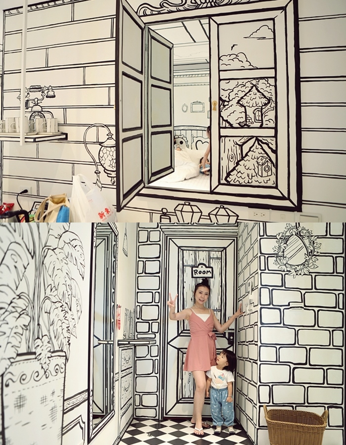 最近黑白2D咖啡廳很流行,但是佛羅倫斯山莊卻直接打造出全台首間黑白2D四人房,真的太神奇了,我其實第一眼再他們的粉絲團就是看到這間房間才被吸引的,一進到房間完全被迷住了,這一整個房間真的可以讓人在這邊拍上一整天,一整個太拍了阿,重點是房間超大間,採光也非常好,還有戶外陽台,真的彷彿走進了漫畫的世界。 |