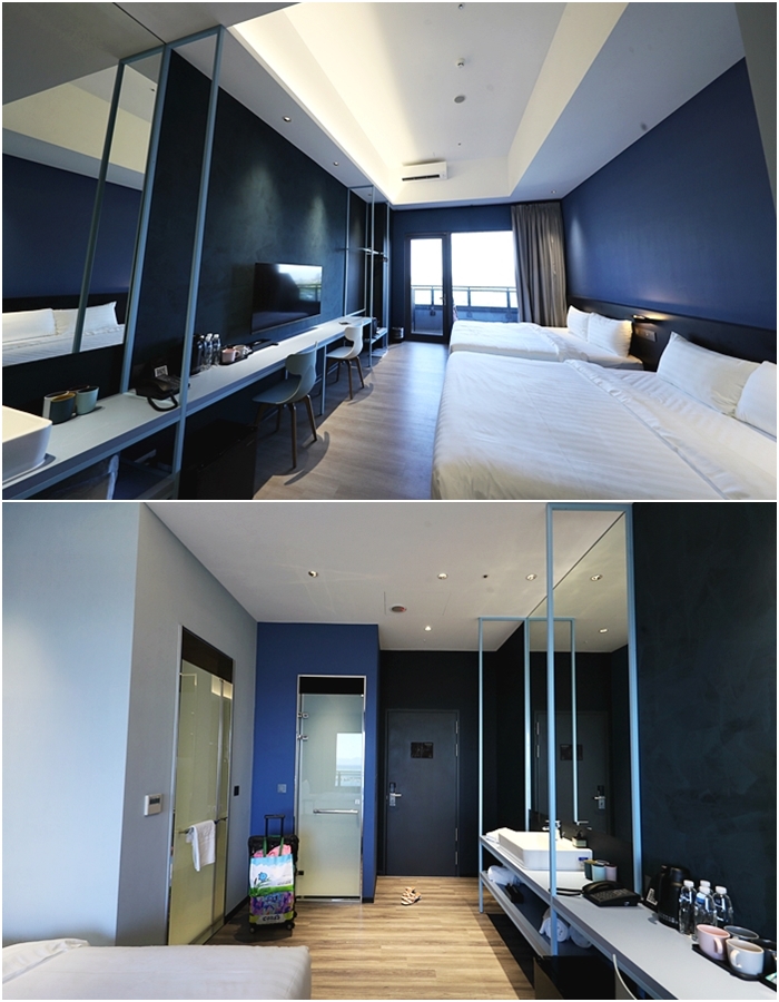我們入住的房型是四人房,房間還滿大間的,每間房間都有陽台,房間沒有太多裝修,主要以簡單舒適為主,也因為這邊的房客通常都是玩水為主,我覺得太多裝飾反而不方便,一打開房間印入眼簾的就是藍色光調,很有海洋氣息。