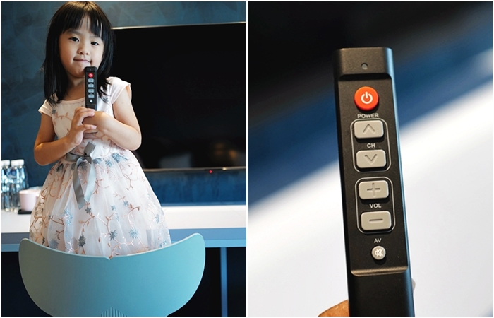 | 電視機的遙控器好特別,我第一次看到那麼簡易的遙控器,我們還研究很久。 |