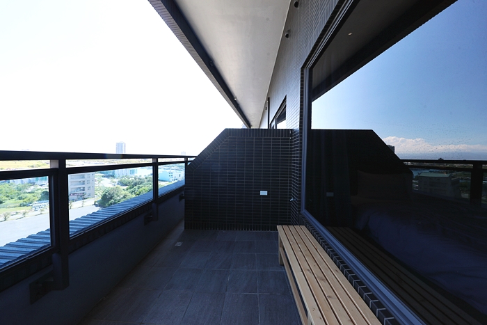 | 露臺空間超大,露臺有一台長木椅,坐在這邊看風景跟吹風都很舒服,這邊的海風還滿大的,吹起來很舒服,不想太熱的話,房內的大落地窗也可以看到窗外的風景。 |