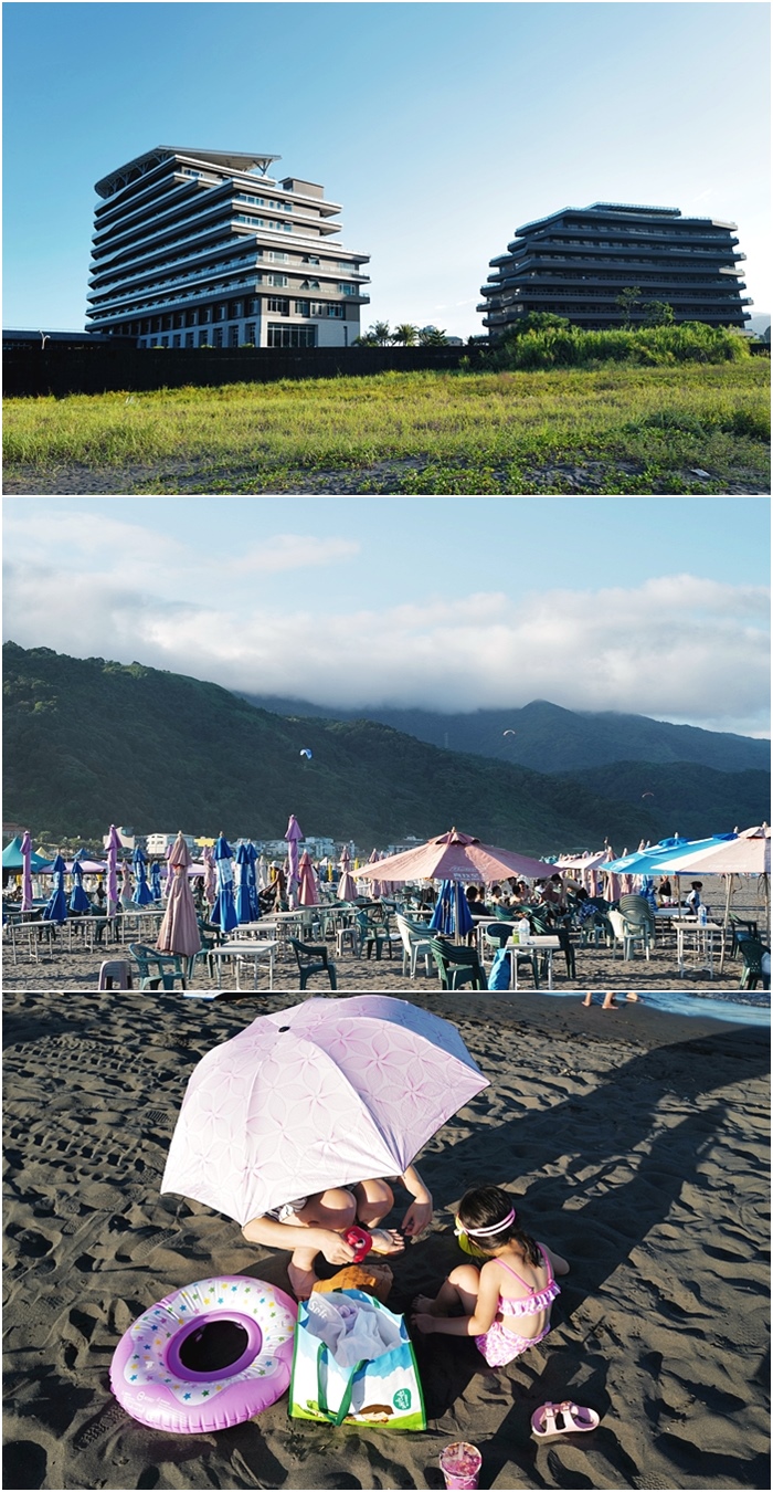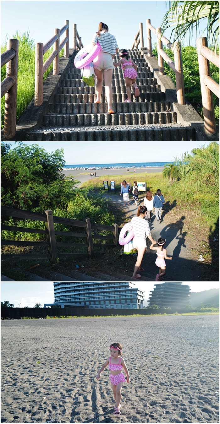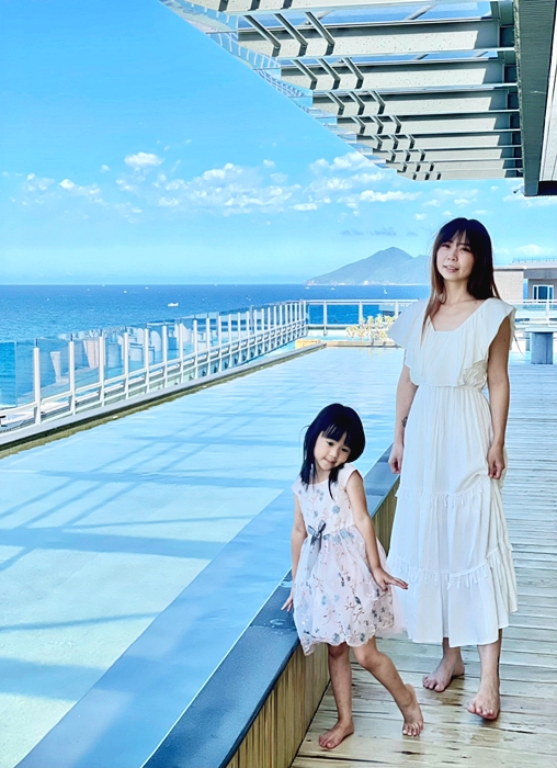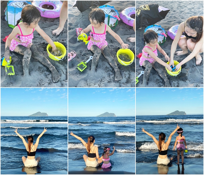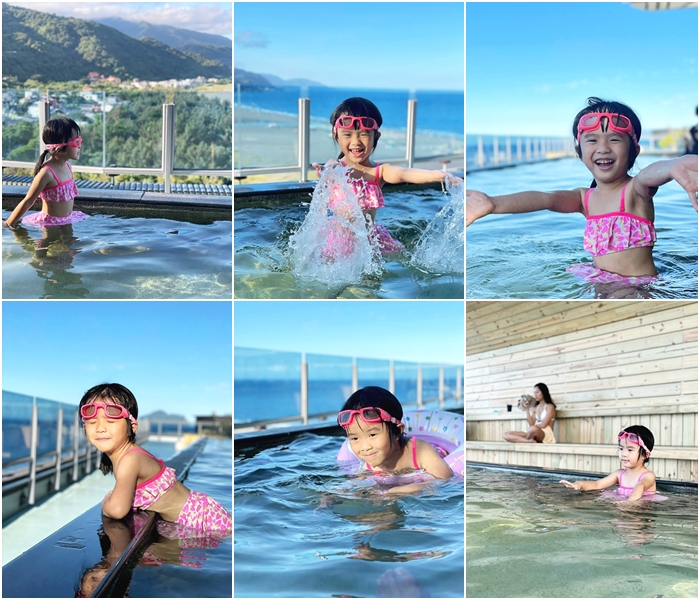 | 雖然是溫泉,但是水溫小朋友不會覺得燙,女兒把它當成泳池玩水玩得很快樂,一整個拍網美照的聖地,本來要衝海邊,但是下午夏天的4.5點太陽還是很大,所以我們在這邊玩到快5點多。 |