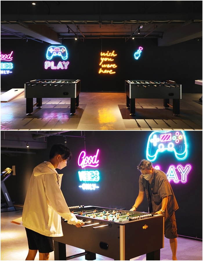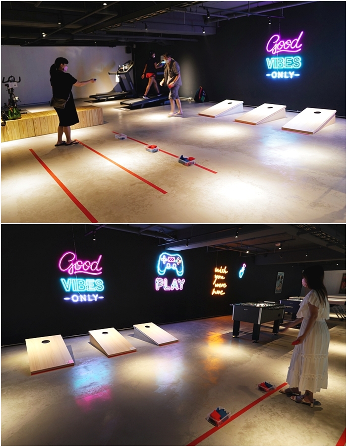 | 這邊有好多都是很少見的遊戲,據說都是美國時下很流行的遊戲,另外還有超多桌遊,也有慢跑機跟飛輪可以運動,晚上的時候這邊真的超熱鬧的。 |