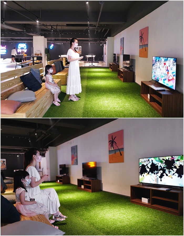 | 還有三台Switch可以玩,遙控器需要去櫃檯領取,玩完後記得拿回去給櫃檯,休憩空間的很多部件都需要跟櫃台拿取,Switch就是我家妹妹專門的,馬利歐賽車真的很好玩! |