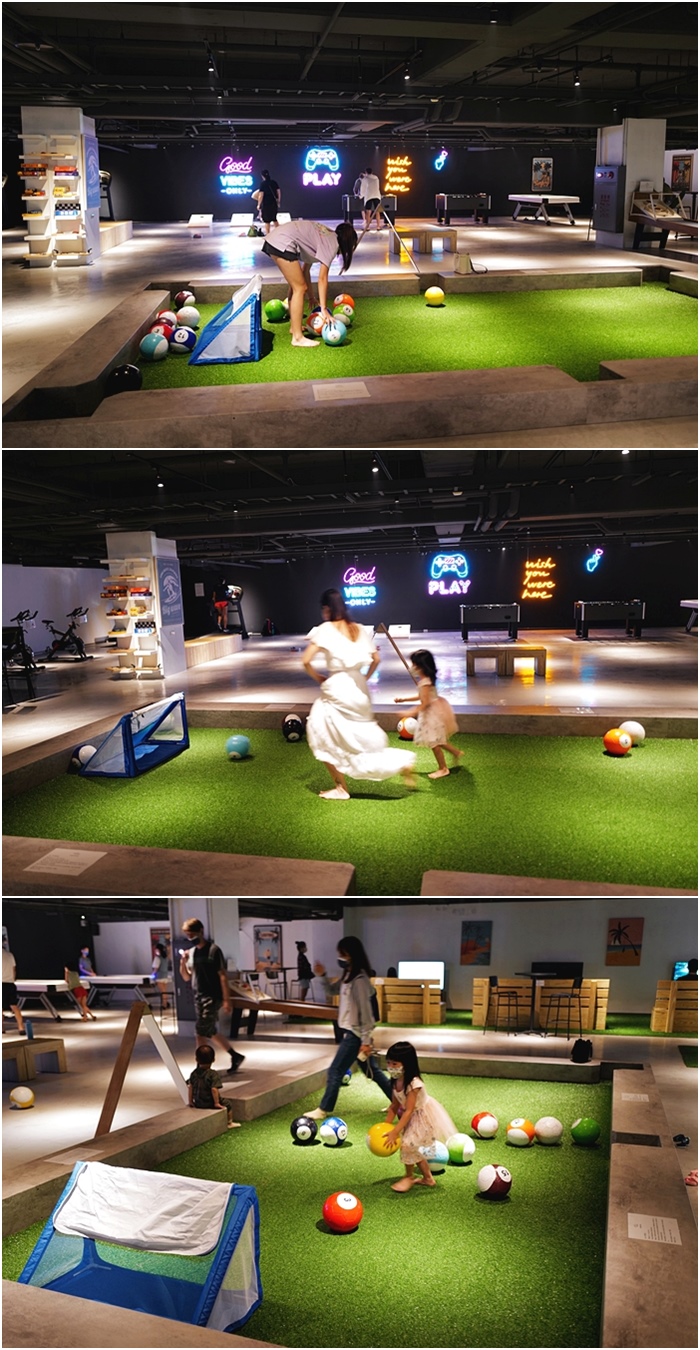 | 小小孩玩的最瘋的就是大概就是中間的小小足球場,一整個完瘋,連我都下場跑到超累,人老了真的跟不上小孩的體力,小朋友的電力真的太恐怖了。 |
