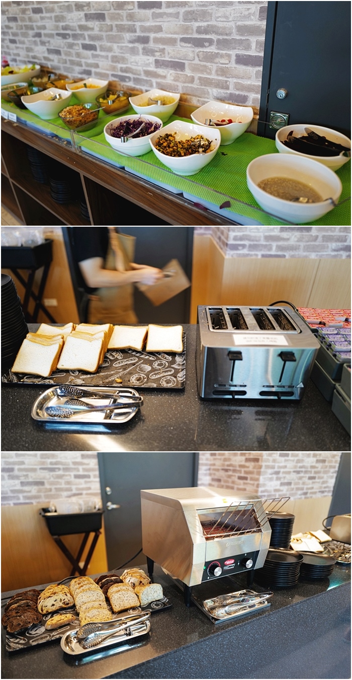 | 沙拉的品項也滿多的,一旁的麵包區有土斯跟歐包選項。 |