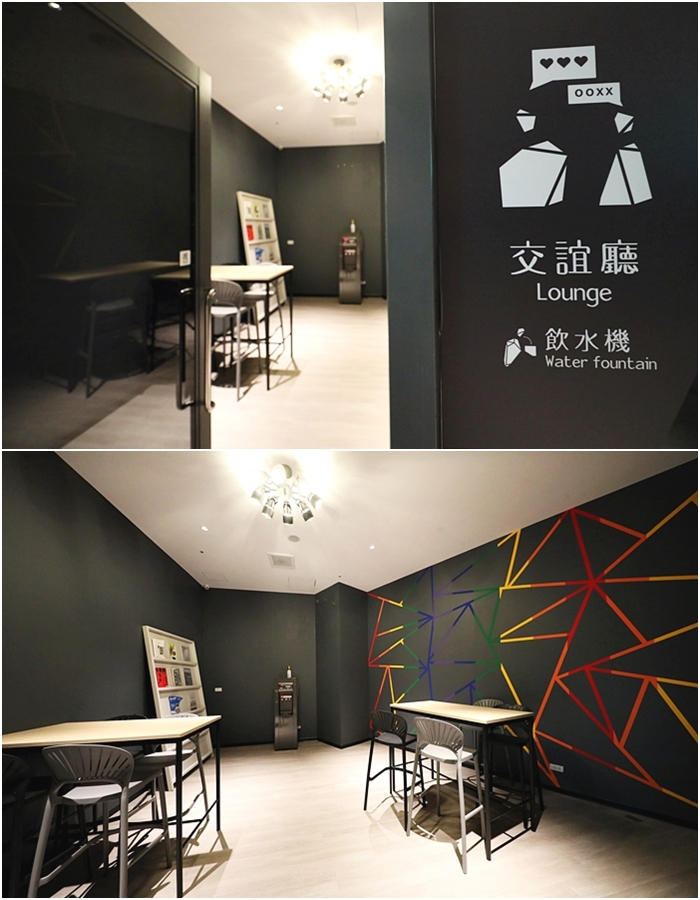 | 每一層樓的電梯處就有一個獨立樓層的交誼廳,畢竟是年輕人較多的飯店,所以晚上的交誼廳都還滿熱鬧的,交誼廳內都有冷熱水機,房內沒有熱水壺,只提供保溫壺,需要熱水都可以來交誼廳裝熱水。 |