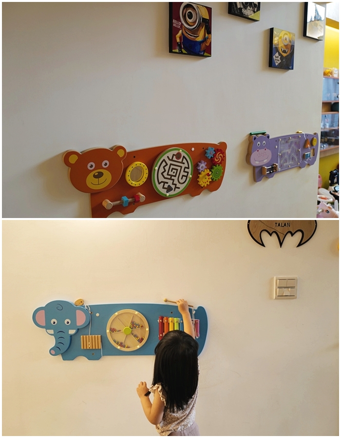 | 掛在牆上的教具也很多樣化,滿滿的玩具遊具教具可以滿足任何小朋友。 |