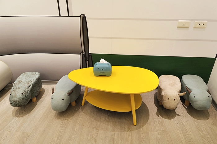 | 桌遊跟翹翹板以外,還有壁面積木也很受歡迎,小板凳是全系列的動物板凳。 |