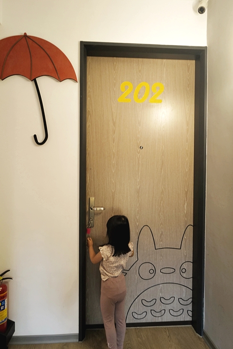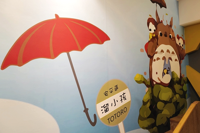 溜小孩親子民宿地點有點偏僻,比較像是重劃區的感覺,雖然在安平港附近,但是附近都是空地跟肛再興建的工地,外表看起來最顯眼的就是車庫鐵門的龍貓造型石板。 |