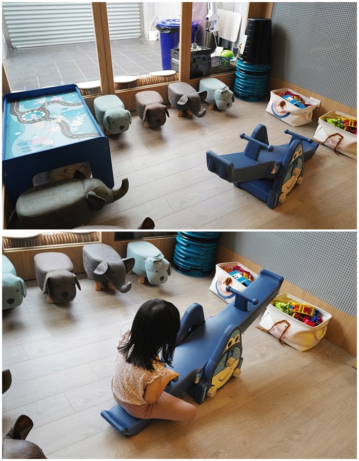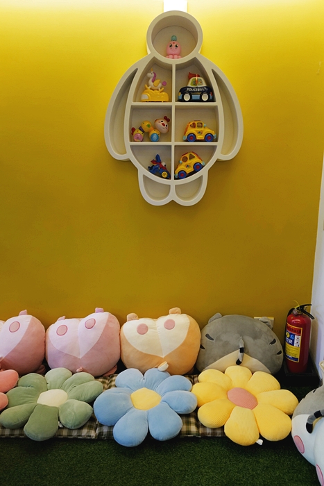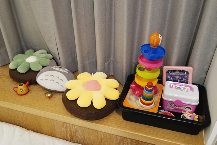 | 另一邊的窗戶坐櫃上也布置得頗為可愛,也有一些玩具可以讓小朋友遊玩。 |