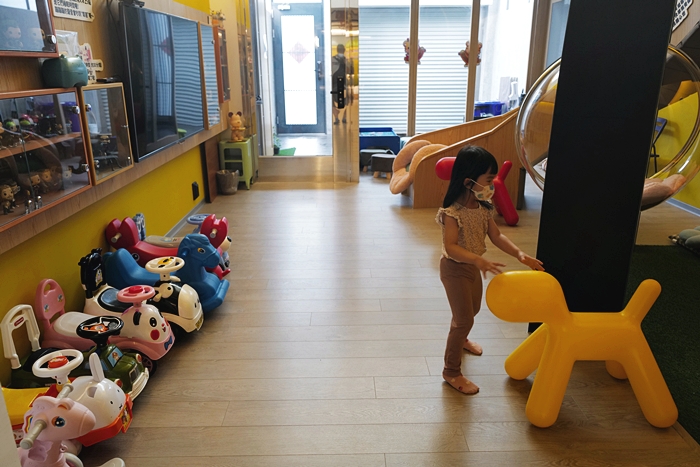 | 進入民宿是需要脫子鞋的,一樓整個都是小朋友的遊戲空間,也準備了很多玩具給小朋友,當天入住好像就只有我們一家人,所以整個空間都是Cola的空間,玩得不要不要的。 |