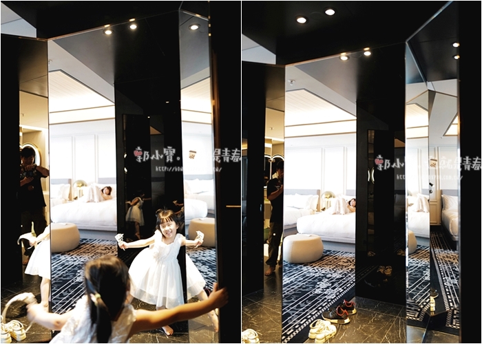 | 另外我也很喜歡李方艾美房內設計的全身鏡,在走道上將兩片板材翻開,就是超大面的鏡子,除了撇除我們家對不肖業者雙面鏡的恐懼以外,也不會半夜走棟備自己嚇到。 |