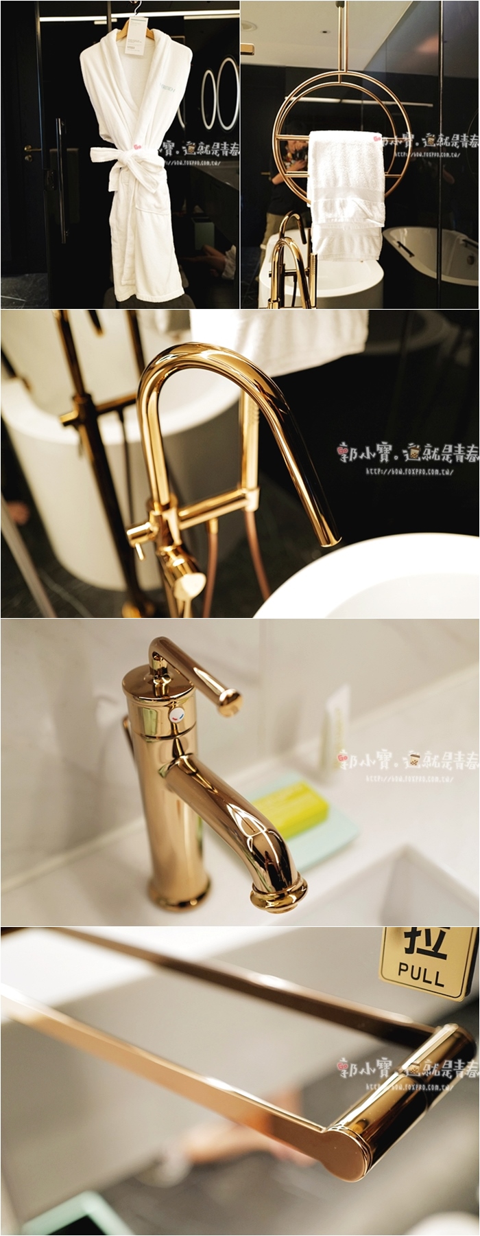 | 浴袍挺厚的,穿起來很舒服,我很愛他們浴廁挑選的五金配件,這古銅帶點玫瑰的金真的很好看,難得的是,清潔人員擦拭的都沒看到半點指紋。 |