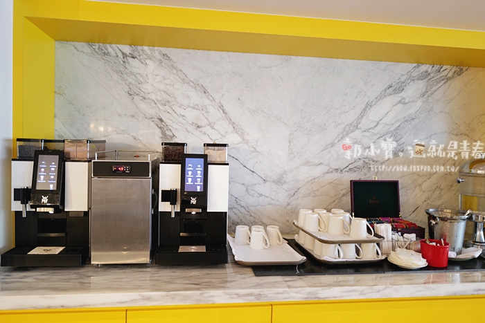 | 如果你入住行政套房,那就可以進入行政酒廊,酒廊不一樣的時間會提供不一樣的餐點,空間也非常的棒,挑高的空間加上一整面落地窗,晚上在這邊喝點小酒、欣賞台中夜景,是很棒的選擇。 |
