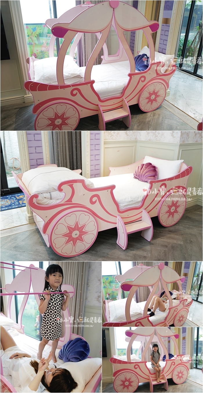 | 兩張造型單人床都是馬車造型,南瓜馬車造型單人床女兒直喊著晚上要睡南瓜馬車,瞬間直接扮演起公主來。 |