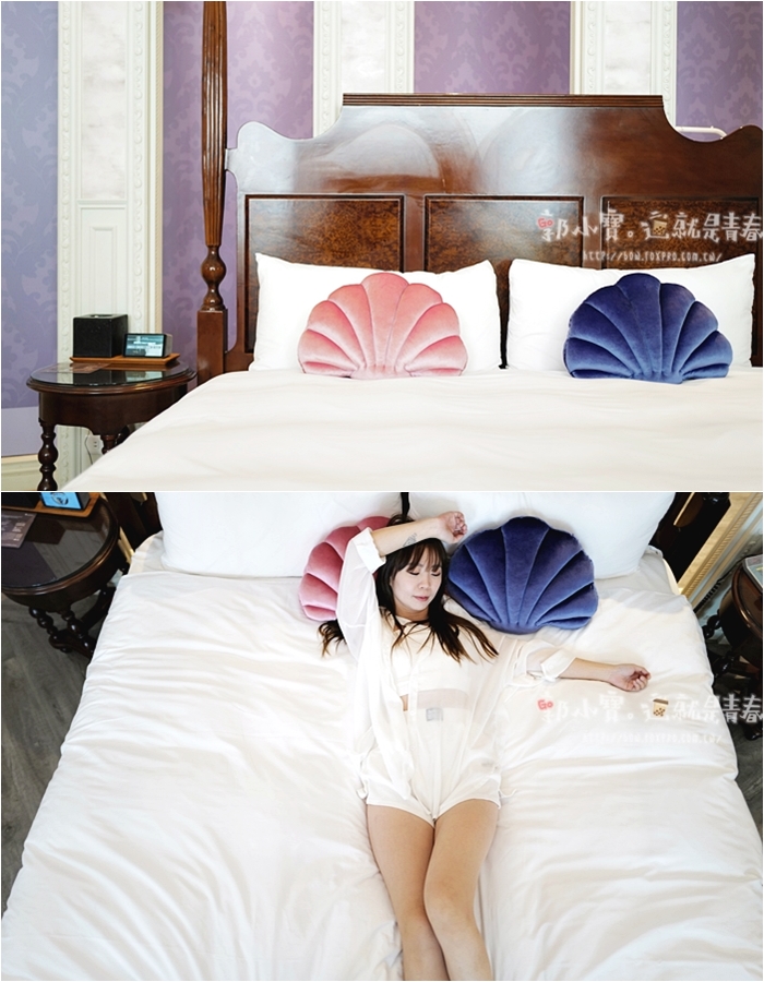 | 整個房間的抱枕都是貝殼造型,據說浴室還有美人魚主題,一整個讓女兒超開心,這邊看看那麼摸摸的,彷彿一下子多了太多公主場景不知道如何開始玩起,芭蕾的床墊都還滿好睡的,軟硬適中,枕頭躺起來也很舒服,睡了一晚起床也不會腰酸背痛的。 |