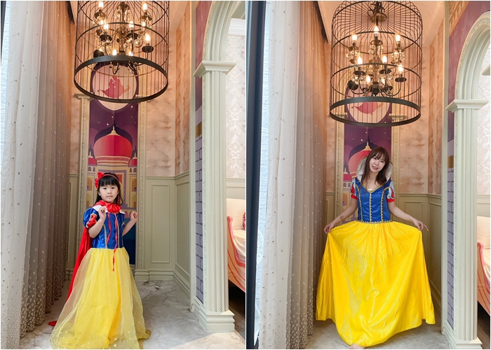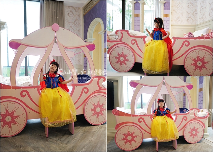 | 母女倆玩起COS PLAY玩的超開心,童話故事的各個場景幾乎都演過一輪了,連白雪吃到毒蘋果的劇情也都玩了好幾次,一整個滿滿的回憶,童話城堡套房提供的各種場景真的是滿滿的誠意,讓女兒過了一把當白雪公主的癮頭。 |