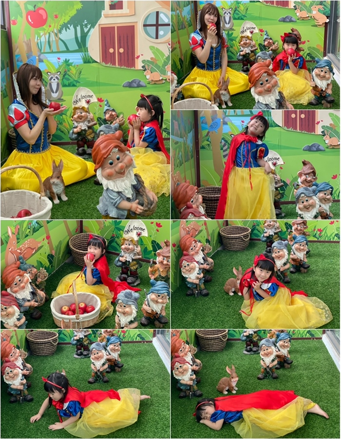 | 母女倆一起上陣,連大女孩看到這場景都會忍不住想換上白雪公主衣服一起入鏡,尤其跟女兒或是兒子換上白馬王子服裝一起拍照都是很幸福的事,還有道具蘋果籃,準備的也太周到。 |