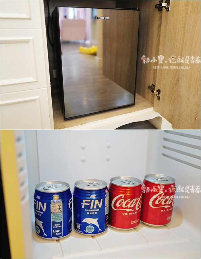 | 下方的小冰箱很有質感,是鏡面玻璃,裡面的飲料是免費提供。 |