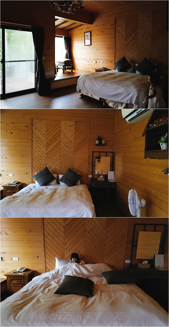 | 房間內提供一張加大雙人床,床墊很好睡,床單棉被也很乾淨,且還散發的淡淡的木頭香氣,這整個空間感我超喜歡的。 |