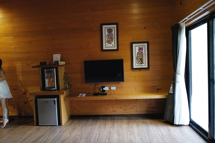 | 床鋪對面是電視,電視下方的吊板可以放置很多東西跟雜物,非常方便,但是這邊唯一的小缺點就是訊號不好,民宿提供的WIFI訊號也很弱,算是死亡角度,但是基本上還是可以運行。 |