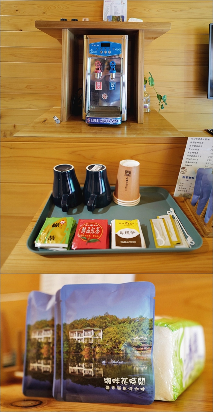 | 直接霸氣的提供一台飲水機,冷熱水一按即出非常方便,另外提供多款茶包,重點是他們的咖啡是濾掛式咖啡,非常大氣,而且是麝香貓風味的咖啡。 |