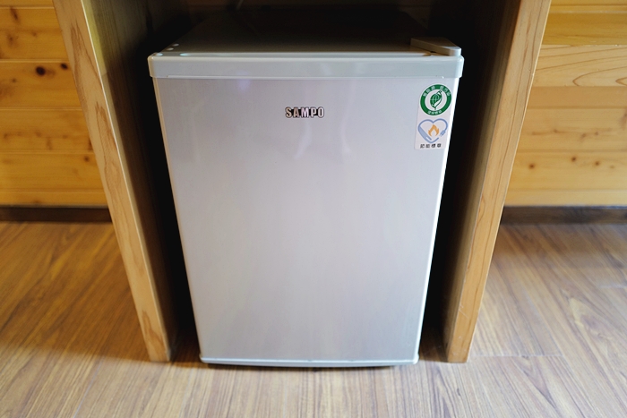 | 底下是真的會冰涼的小冰箱,很多飯店民宿的冰箱基本上都不會冷,不過這邊的冰箱還滿冷的。 |