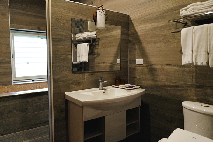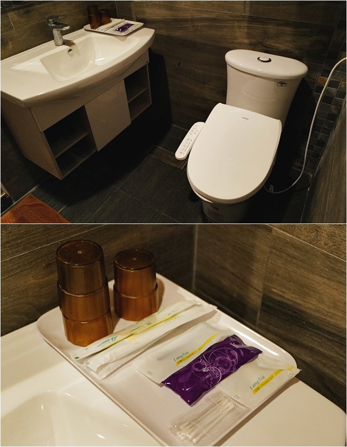 | 重點當然在浴廁,大湖可是溫泉鄉,湖畔花時間當然也是同樣主打溫泉,浴廁是屬於乾濕分離,。 |