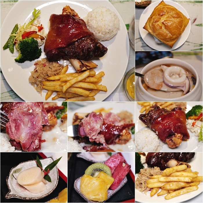 | 我的德國豬腳分量頗為實在,價格也是一般的市售價格,沒有因為這邊市觀光地區跟民宿就價格飆漲,豬腳的部份感覺是醃製完後滷製過,跟北部的魯完後再油炸完全不一樣,豬皮吃起來也不是酥脆的外皮,不過他們家的外皮這樣的料理方式也滿好吃的,酥皮濃湯也很好喝,酥皮厲害! |