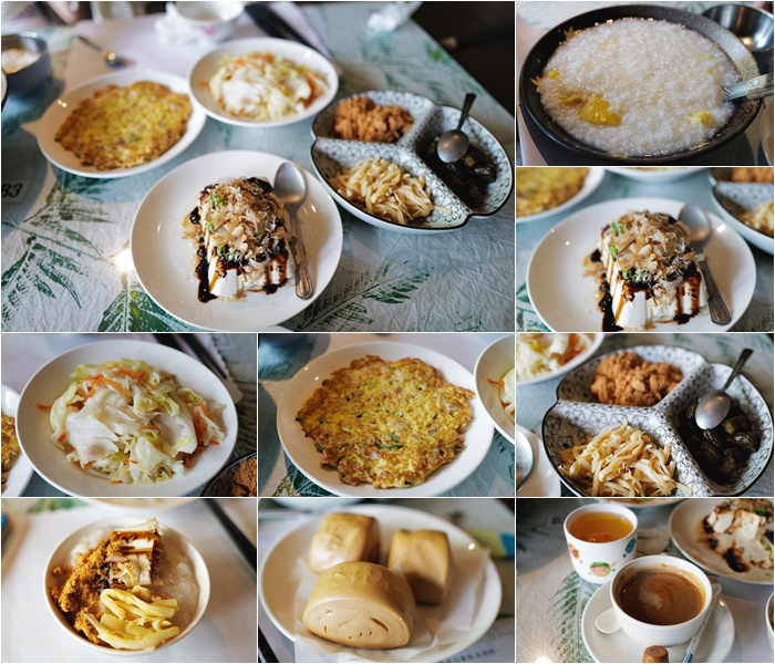 | 看看這豐富的早餐菜色,粥品是地瓜粥,地瓜非常甜,高麗菜也很好吃,各種早餐小點也都很可口。 |