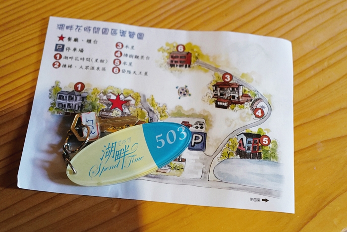 | 先到櫃台報到後,會有工作人員帶領房客來到木屋前,還要辦理專屬Onetrip玩趣旅遊平台的入房手續,最後就得到了入門鑰匙跟園區的地圖。 |