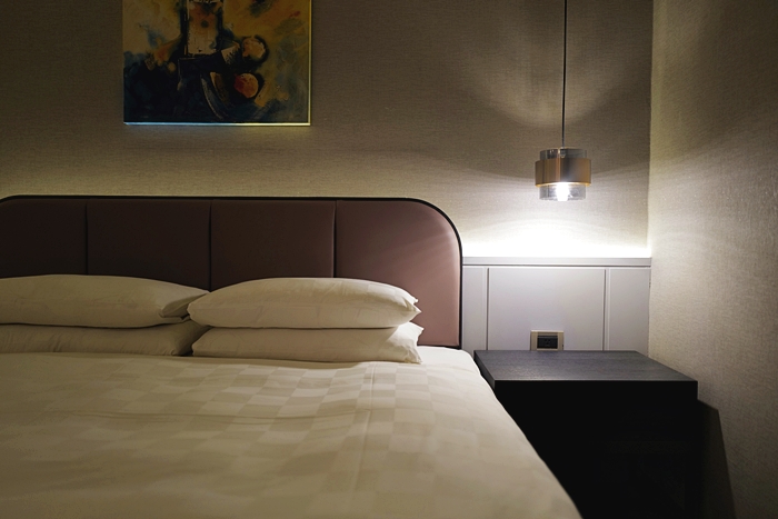 | 印入眼簾的就是超大的空間,床墊非常舒服,比一般的酒店挑選的更好,畢竟天悅飯店以前可是很多職棒球員入住,所以床墊當然不是隨便的,基本上都是客製床墊,睡起來不會腰酸背痛,美張床都是提供四顆枕頭,讓旅客們可以隨意調整頸部的高度,棉被也很輕柔,蓋起來不會有厚重感。 |