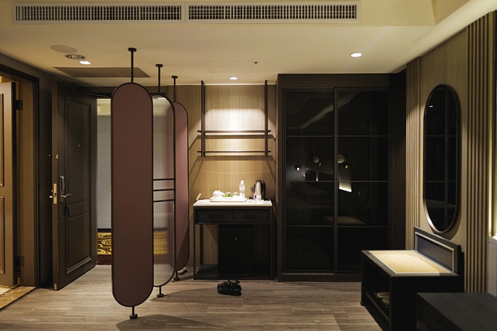 | 這次入住的是改裝後的家庭房,剛剛提到的牆面變的超新穎,花瓷搭配灰暗色的壁布還滿好看的。 |