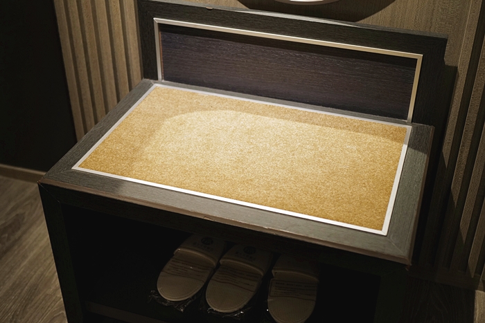 | 行李架保養得很好,下方有拖鞋,拖鞋還滿厚的,不是一般的紙拖鞋。 |