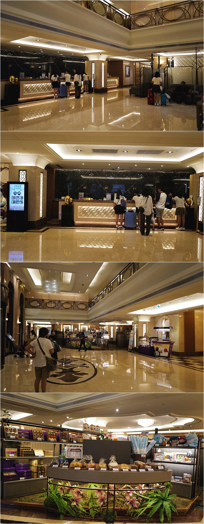 | 天悅飯店大廳雖然沒有特別挑高,但是整個空間大多都是大理石跟樣板的歐式設計同樣讓人感覺非常氣派,辦理入住的人潮非常多,但是我們在義大樂園玩到下午4.5點才辦理入住,所以非常快速的就拿到房卡,大廳旁就是天悅的咖啡吧。 |