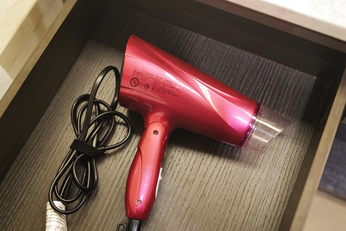 | 吹風機很夠力,對於長髮女生來說非常實用,太妃最怕飯店提供的吹風機是壁掛小小的一隻那種,對於我們家兩個女孩都是長髮來說,媽媽吹完自己的長髮又接著要吹女兒的頭髮,太小隻的吹風機手榛的會斷掉。 |