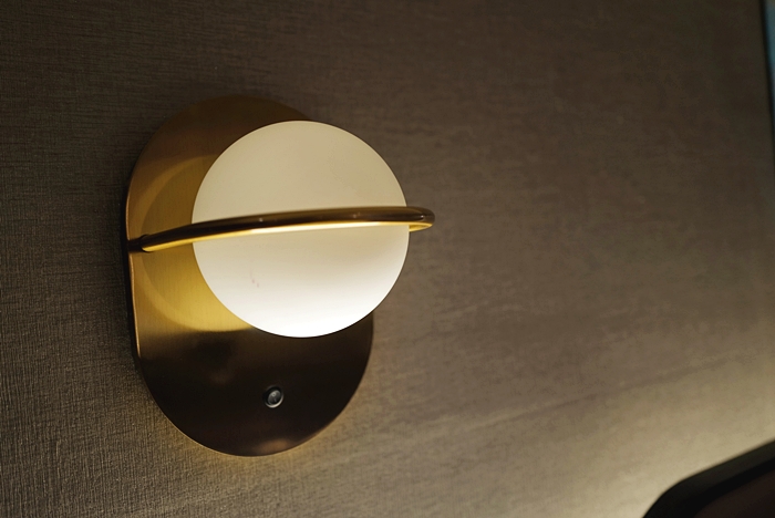 | 整體房間的燈光也設計的很不錯,有氣氛情境又不會太昏黃,每個區域的燈光都是獨立控制,床頭邊也都有插頭可以讓手機充電。 |