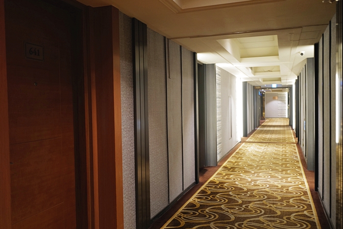 | 天悅飯店後來經過幾次的改裝,很多樓層都逐漸翻新,走道算是寬敞,牆面目前都是翻新這兩年時尚酒店很喜歡的異材質拼接,整體顯得新穎許多。 |