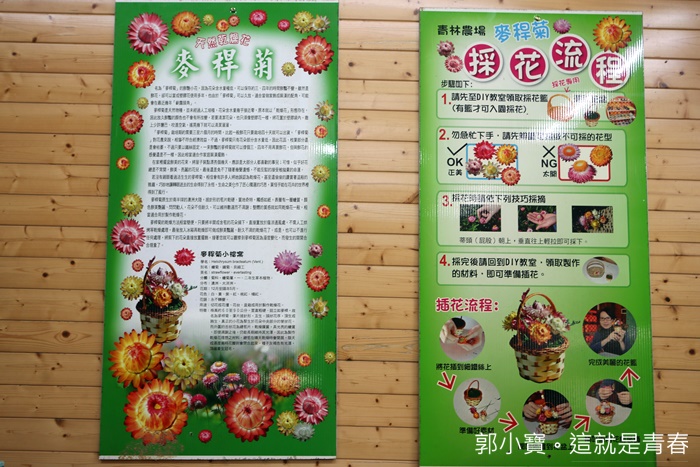 | 青林農場也針對四季不同的季節跟花季舉辦了很多不一樣的DIY體驗活動,滿滿的體驗活動可以讓小朋友更了解大自然,這邊也可以控窯真的很有趣,麥桿菊採花流程是農場內最受歡迎的一個活動,但是我們今天要DIY的是另一個。 |