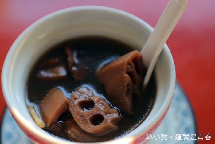 | 蓮藕湯比較偏向藥膳風格,但是喝起來溫潤許多,且後面帶點甜味,似乎是蓮藕熬煮出來的甜味很好喝,瞬間每碗都被喝到碗底朝天。 |