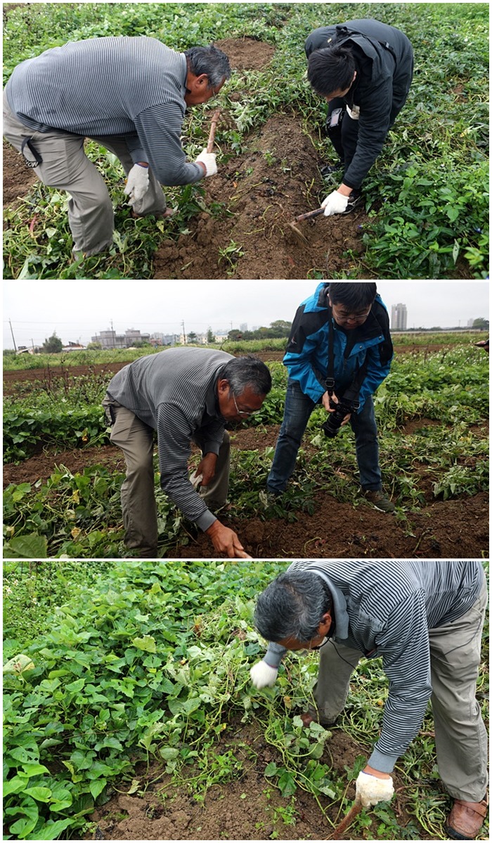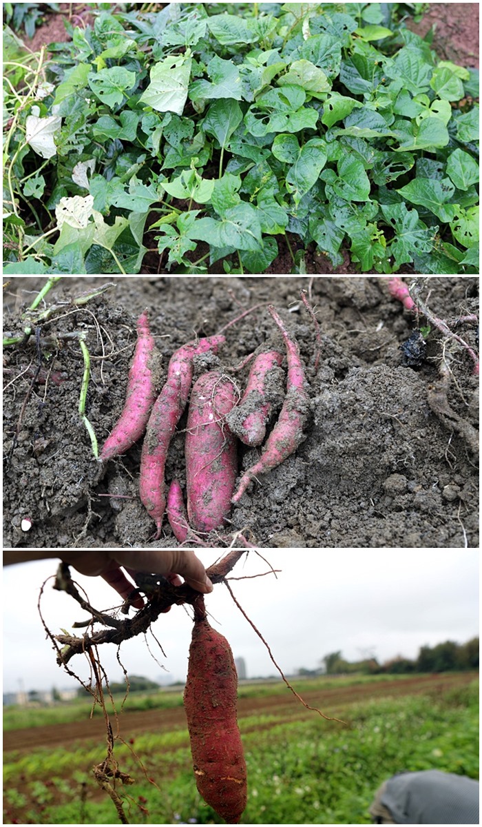 | 先要把地瓜的葉子全部去除掉,然後再從旁邊的土開始挖避免傷害地瓜,民宿主人這邊大概種了7.8種品種的地瓜,還有一些蔬菜跟洛神花,目前體驗的大多以挖地瓜跟摘洛神花為主。 |