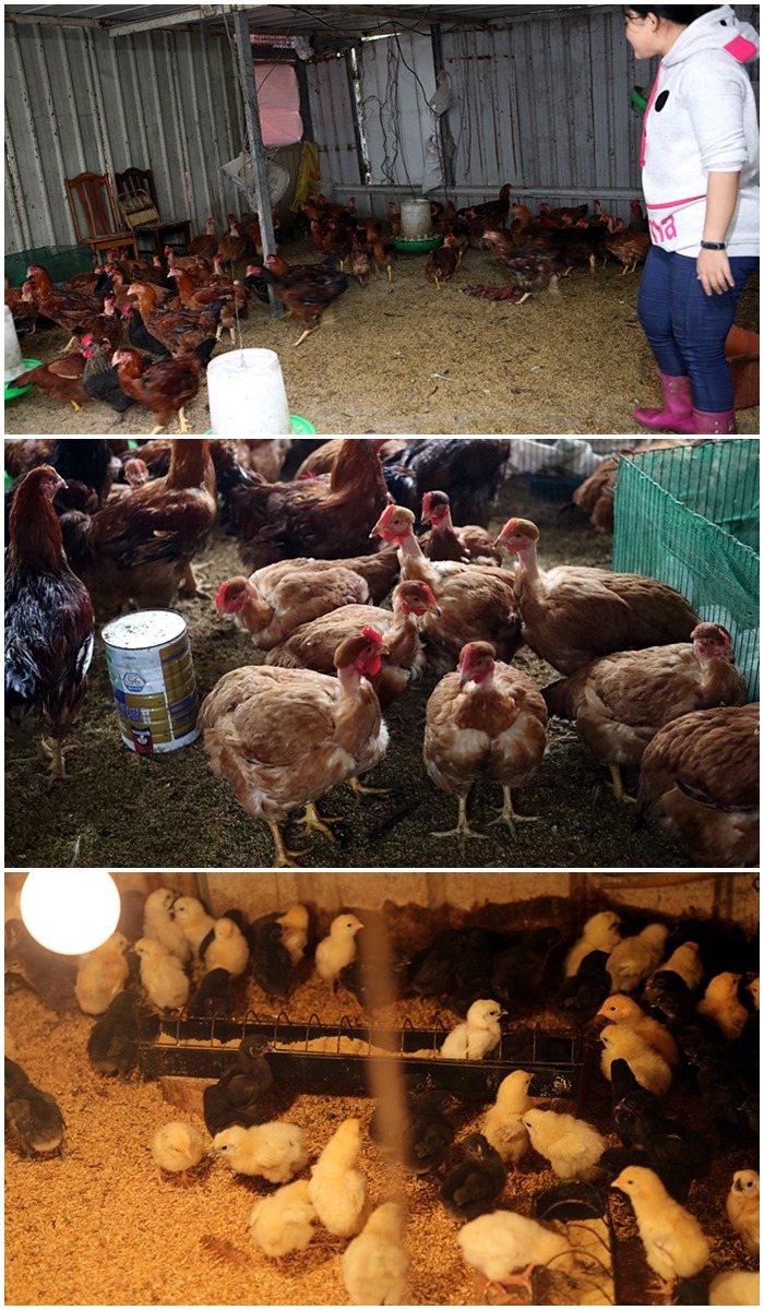 | 一級棒農場的雞群分布在每個角落,主要的雞窩大概有兩三個區域,還有專門培養小雞的地方,因為最近的氣溫較低,所以還要幫培養小雞的地方蓋上棉被保持一定的溫度。 |