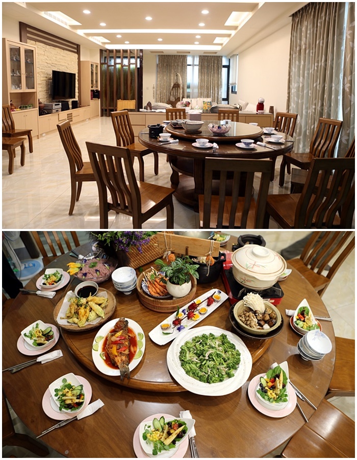 完成辛苦的撿雞蛋跟拔菜以後我們就回到林園居民宿休閒農場準備午餐了,很多人以為鄉下或是農業園區就只能好好放鬆,但是其實我們還挺忙得,這邊的農家體驗活動真的非常的多,午餐的部分是林園居民宿主人跟當地廚師一起打造的餐點。