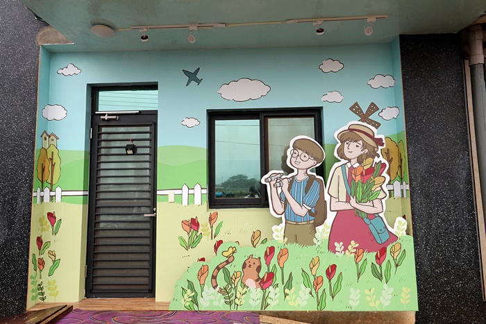 | 立體繪本插畫家-鄭星慧在林園居民宿休閒農場的創造更加豐富性,可以內外互動,除了拍照更增添了說故事的樂趣,讓自己可以更深入其境桃園花鄉奇遇記的場景裡呢! |